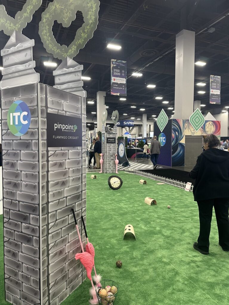 This year’s ITC theme, Alice in Wonderland, inspired some of the most imaginative booth concepts we’ve seen, and Pinpoint Predictive’s croquet activation stood out as a crowd favorite. Designed to mirror the playful unpredictability of Wonderland, the experience gave attendees a hands-on way to learn about behavioral intelligence and risk prediction. The activation was not only on brand but also tied deeply to Pinpoint’s mission: bringing human nuance and psychology into the future of insurance.